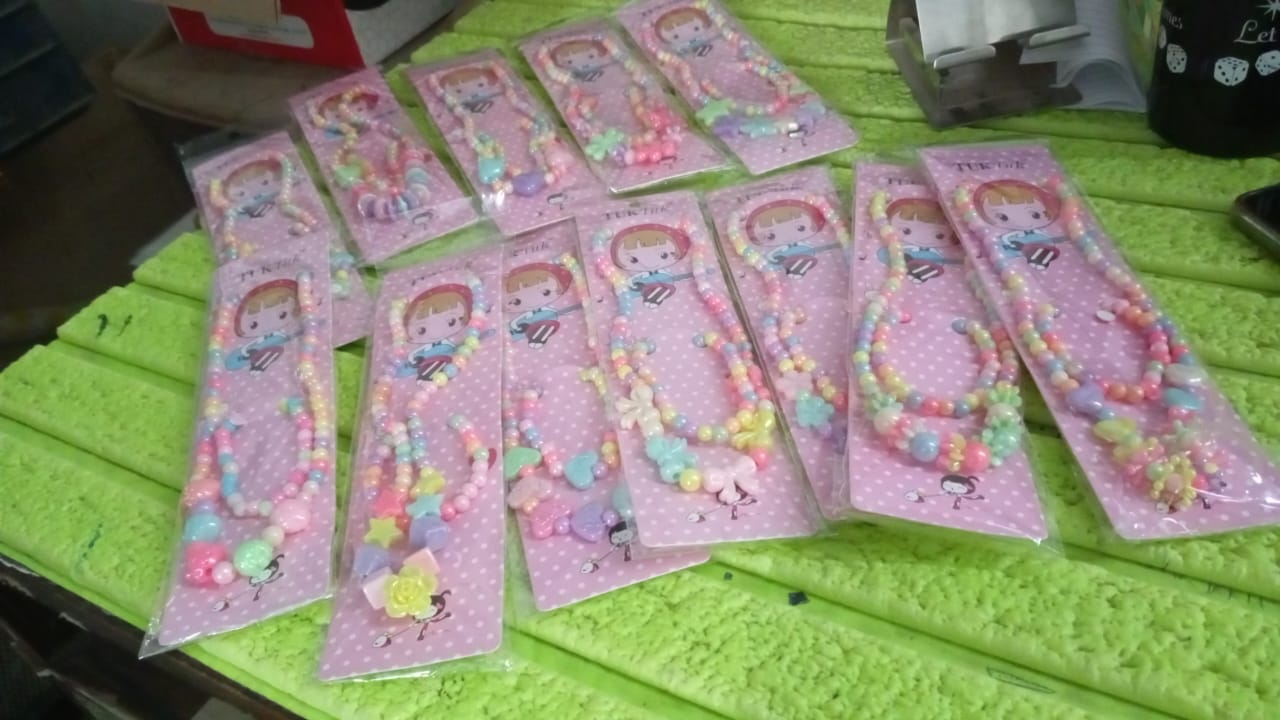 Pearl Pendant Necklace Bracelet Ring Combo Set | Kids Necklace Combo Set Enamel Jewellery Set For Girls, Baby, and Toddlers (2 Pc Set)