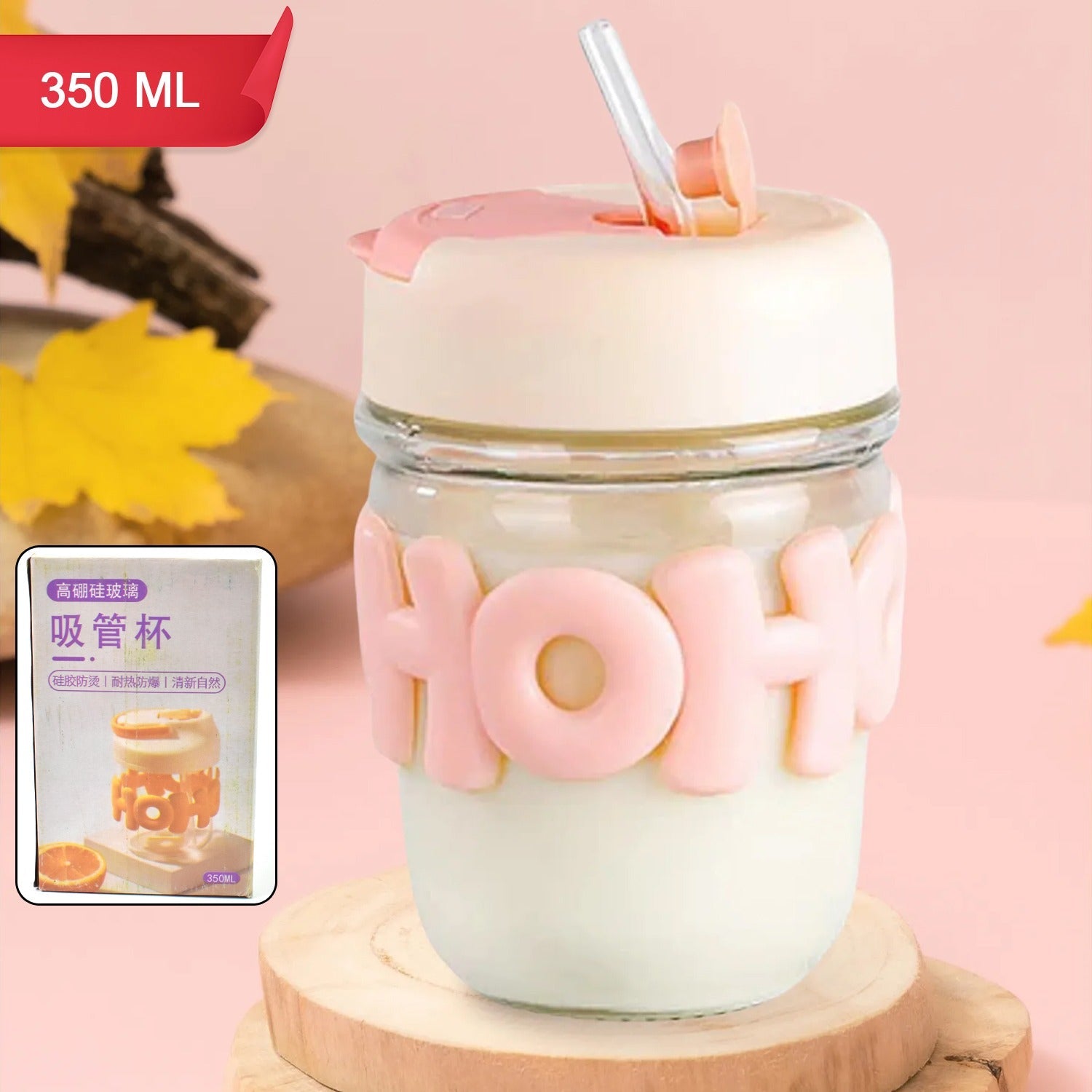 Glass Coffee/Tea Mug - 350ml Cup with Lid, Alphabet Design, Multipurpose Drinkware