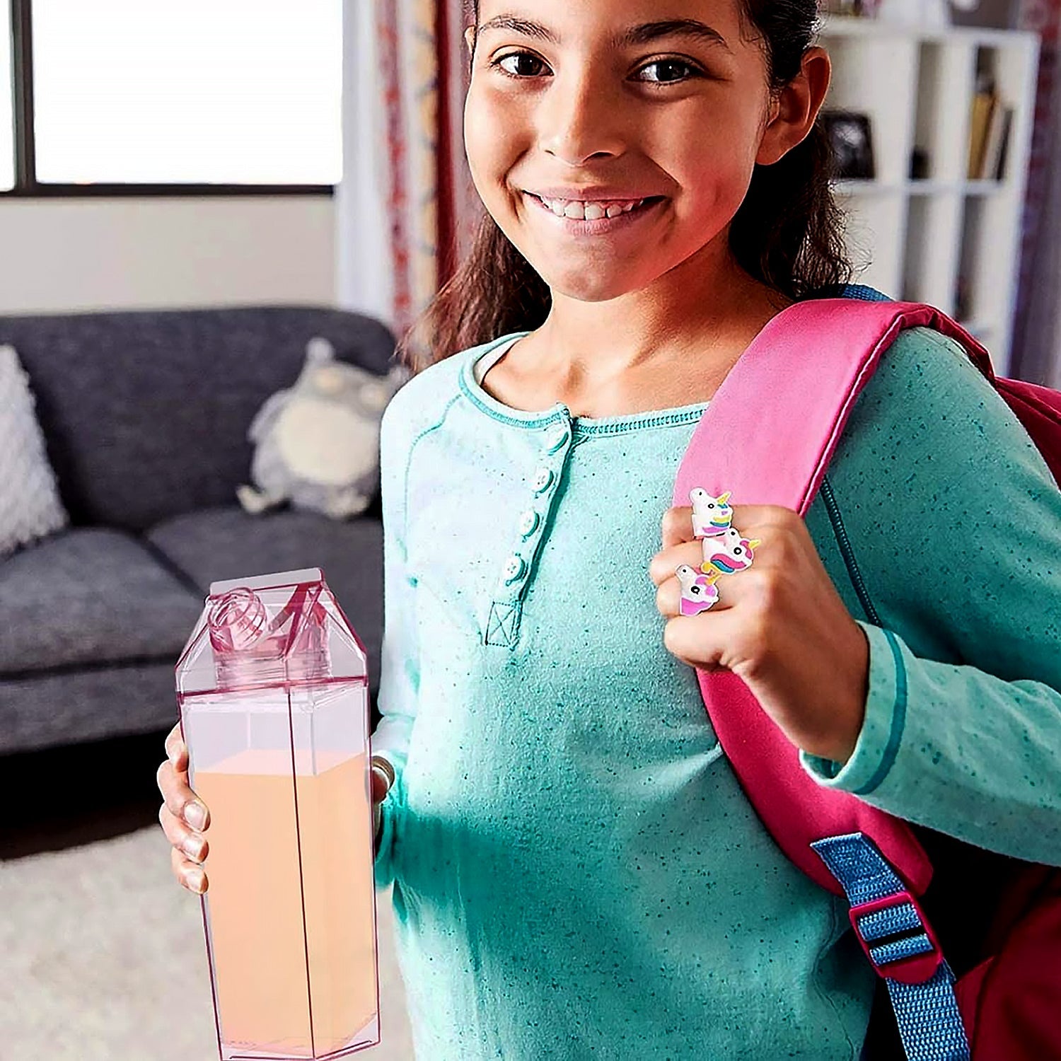 17764 Plastic Milk Carton Colorful Clear Water Bottle, 17 Oz Portable Milk Box Leakproof Square Juice Bottle for Outdoor Sports Travel Camping